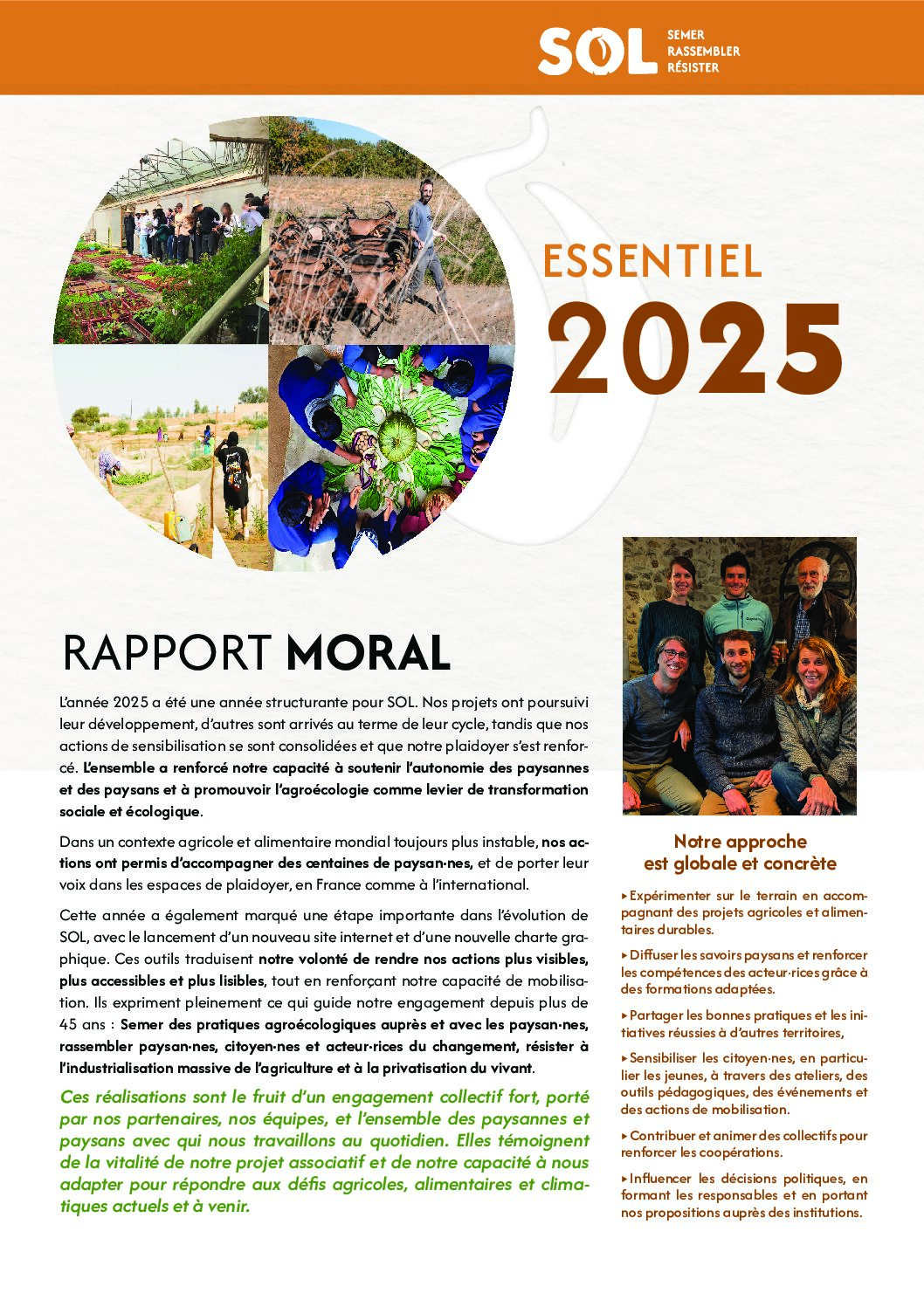 Chez SOL, nous défendons depuis plus de 40 ans l’agroécologie paysanne comme une réponse essentielle pour nourrir durablement les populations tout en préservant les écosystèmes. En 2025, dans un monde agricole et alimentaire toujours plus fragilisé, nos actions en France, au Sénégal et en Inde ont poursuivi cet engagement en faveur de l’autonomie paysanne, de la souveraineté alimentaire et de systèmes agricoles plus justes et résilients.